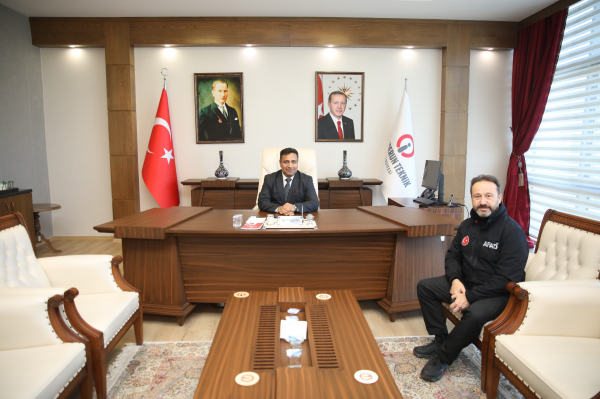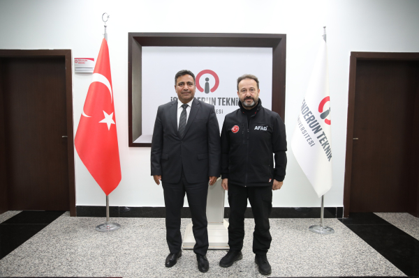 İskenderun Teknik Üniversitesi (İSTE) Rektörü Prof. Dr. Mehmet DURUEL, AFAD Hatay İl Müdürü Taner BAYINDIR’ı Rektörlük Makamında ağırladı.