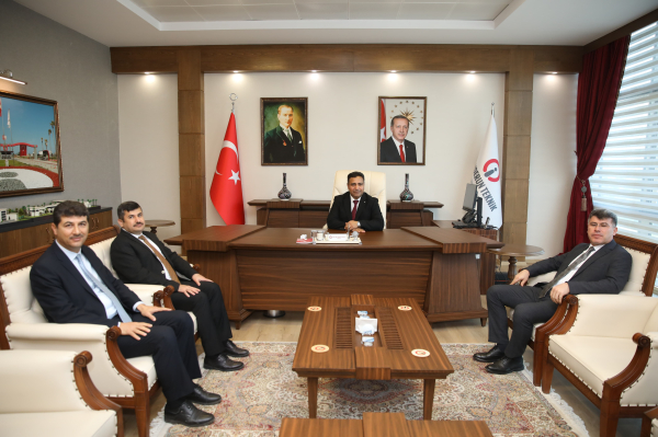 Hatay İl Milli Eğitim Müdürü Harun TÜYSÜZ, İskenderun İlçe Milli Eğitim Müdürü Ali HAYTAZ ve Arsuz İlçe Milli Eğitim Müdürü Ahmet YANMAZ, İskenderun Teknik Üniversitesi (İSTE) Rektörü Prof. Dr. Mehmet DURUEL’i makamımda ziyaret etti.