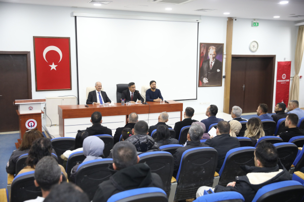 İskenderun Teknik Üniversitesi (İSTE) Rektörü Prof. Dr. Mehmet DURUEL, Rektör Yardımcısı Prof. Dr. Ahmet YAPICI ve İSTE Genel Sekreteri Yılmaz BALAMAN, İSTE Koruma ve Güvenlik Personelleriyle bir araya geldi. 21 Ocak Salı Günü İSTE Merkez Kampüs Mavi Salon’da gerçekleşen toplantıda, üniversitenin güvenliğiyle ilgili çeşitli konular ele alındı. Tanışma, mevcut sorunların ele alınması ve çözüm önerilerinin tartışılması gibi ana temaların konuşulduğu toplantıda, üniversite yönetimi personelin görüş ve taleplerini dinledi.