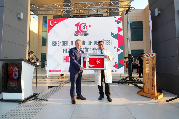 İskenderun Teknik Üniversitesi’nde 2024-2025 Akademik Yılı Mezuniyet Töreni büyük bir coşkuyla kutlandı. 27 Haziran Cuma günü Merkez Kampüs Kütüphane Önü’nde gerçekleştirilen törene; öğrenciler, aileleri ve kent protokolü yoğun ilgi gösterdi. İskenderun Teknik Üniversitesi Rektörü Prof. Dr. Mehmet DURUEL’in ev sahipliğindeki törene Hatay Valisi Mustafa MASATLI, Hatay Milletvekili Necmettin ÇALIŞKAN, Hatay Cumhuriyet Başsavcısı Ahmet ÇELİKKOL, Hatay Mustafa Kemal Üniversitesi Rektörü Prof. Dr. Veysel EREN, İskenderun Kaymakamı Muhammet ÖNDER, Belen Belediye Başkanı İbrahim GÜL, İskenderun Belediye Başkan Vekili Cihan AKYÜREKOĞLU, iş insanları Recep ATAKAŞ ve Osman GÖZÜKARA’nın yanı sıra il ve ilçe protokolü, akademisyenler, idari personel, mezun öğrenciler ve aileleri katıldı.