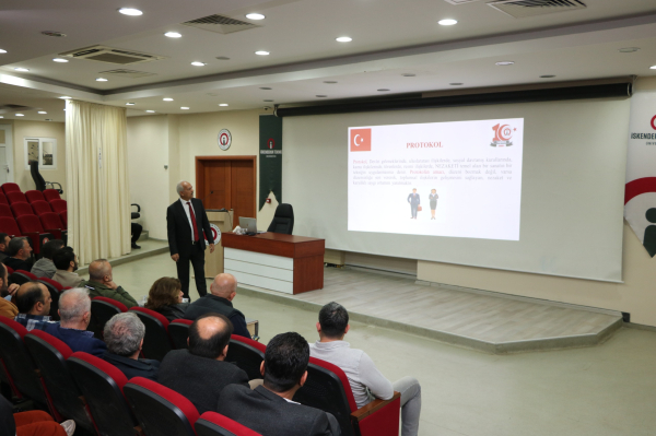İskenderun Teknik Üniversitesi’nde kalite güvence sistemi kapsamında idari personele yönelik “Protokol, Nezaket ve Görgü Kuralları” konulu eğitim programı gerçekleştirildi. 19 Kasım Çarşamba günü Merkez Kampüs Kırmızı Salon’da düzenlenen eğitime, Üniversite Genel Sekreteri Yılmaz BALAMAN, Deniz Bilimleri ve Teknolojisi Fakültesi Dekanı Prof. Dr. Yasemin Bircan YILDIRIM, Turizm Rehberliği Bölüm Başkan Yardımcısı Öğr. Gör. Dr. Murat YURTLU, daire başkanları ve çok sayıda idari personel katıldı. Eğitimde; protokol kuralları, nezaket ilkeleri, görgü kuralları, toplantı protokolü, tanışma ve tanıştırma, selamlama ve hitap biçimleri, makam protokolü, resmi yazışmalar, telefon protokolü, kılık–kıyafet adabı, yemek ve davet kuralları ile araç protokolüne ilişkin temel bilgiler ele alındı.