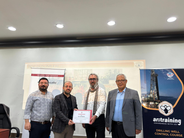International Well Control Forum (IWCF) akredite firması ARI TRAINING tarafından verilen eğitim, petrol ve doğal gaz sektöründe uluslararası geçerliliği olan bilgi ve becerileri öğrencilere kazandırmayı hedefledi. Üç gün süren program; uygulamalı içerikler, örnek senaryolar ve ileri düzey teknik bilgilerle katılımcılara kapsamlı bir deneyim sundu. Eğitimin kapanış programı, Petrol ve Doğalgaz Mühendisliği Bölüm Başkanı Prof. Dr. Ergül YAŞAR’ın konuşmasıyla başladı. Program, İSTE-SPE Topluluğu akademik danışmanı Arş. Gör. Dr. Onur Eser KÖK ve öğrenci topluluğu başkanı Faruk Efe SEZER tarafından koordine edildi. Eğitimi başarıyla tamamlayan öğrencilere sertifikaları, İskenderun Teknik Üniversitesi Rektör Yardımcısı Prof. Dr. Nazif ÇALIŞ tarafından takdim edildi.