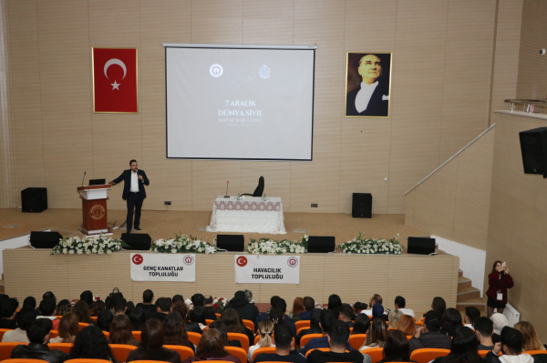 İskenderun Teknik Üniversitesi, 7 Aralık Dünya Sivil Havacılık Günü kapsamında Havacılık ve Uzay Bilimleri Fakültesi bünyesinde faaliyet gösteren İSTE Genç Kanatlar Topluluğu ve Havacılık Topluluğu tarafından düzenlenen kapsamlı bir etkinliğe ev sahipliği yaptı. 8 Aralık Pazartesi günü Merkez Kampüs Turuncu Salonda gerçekleştirilen programa, İskenderun Teknik Üniversitesi Rektör Yardımcısı Prof. Dr. Nazif ÇALIŞ, fakülte akademik ve idari personeli, sektör temsilcileri ve çok sayıda öğrenci katıldı. Yoğun ilgi gören etkinlik Saygı Duruşu ve İstiklal Marşı’nın okunmasıyla başladı. Programda havacılık sektörünün farklı alanlarında görev yapan uzman isimler öğrencilerle bir araya gelerek deneyimlerini aktardı ve sektöre ilişkin güncel bilgiler paylaştı.