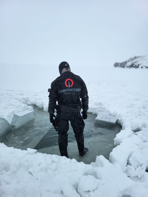 İskenderun Teknik Üniversitesi, uygulama odaklı eğitim anlayışı doğrultusunda öğrencilerine zorlu saha koşullarında benzersiz deneyimler kazandırmaya devam ediyor. İSTE Denizcilik Teknolojileri Meslek Yüksekokulu bünyesinde eğitim-öğretim faaliyetlerini sürdüren Su Altı Teknolojisi (SAT) ve Su Altı Kaynak Teknolojisi (SAK) programları tarafından, Ardahan’da bulunan Çıldır Gölü’nde buz altı dalışı çalışması başarıyla gerçekleştirildi. Eğitim ve bilimsel araştırma amacıyla planlanan faaliyet, İMEAK Deniz Ticaret Odası’nın katkılarıyla hayata geçirilirken; kış koşullarının hâkim olduğu, düşük sıcaklık ve kalın buz tabakasıyla kaplı Çıldır Gölü, öğrencilere ekstrem çevresel şartlarda uygulamalı eğitim imkânı sundu. Gerçekleştirilen buz altı dalışıyla öğrenciler, mesleki bilgi ve becerilerini sahada test etme ve geliştirme fırsatı buldu.