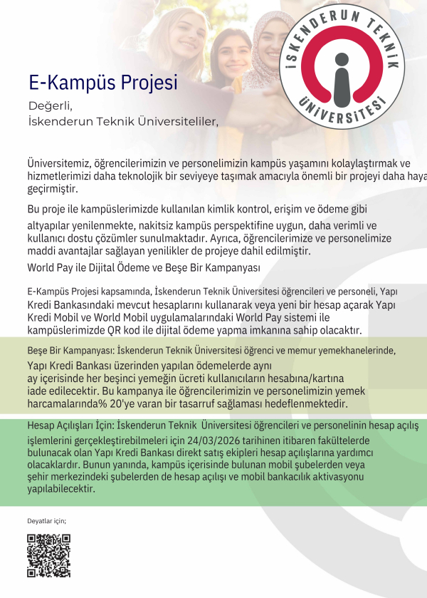 “Üniversitemizde hayata geçirdiğimiz E-Kampüs Projesi ile hem teknolojik altyapımızı güçlendiriyor hem de öğrencilerimiz ve personelimiz için daha konforlu, hızlı ve ekonomik bir kampüs yaşamı inşa ediyoruz. Bu iş birliği sayesinde, herhangi bir bütçe yükü oluşturmadan sistemlerimizi yenileyerek önemli bir verimlilik sağlayacağız. Özellikle yemek harcamalarında sağlanacak tasarruf ve ‘Askıda Yemek’ uygulaması ile sosyal dayanışmayı güçlendirmeyi hedefliyoruz. İskenderun Teknik Üniversitesi olarak, dijitalleşme ve sürdürülebilirlik odaklı projelerle örnek olmaya devam edeceğiz.”